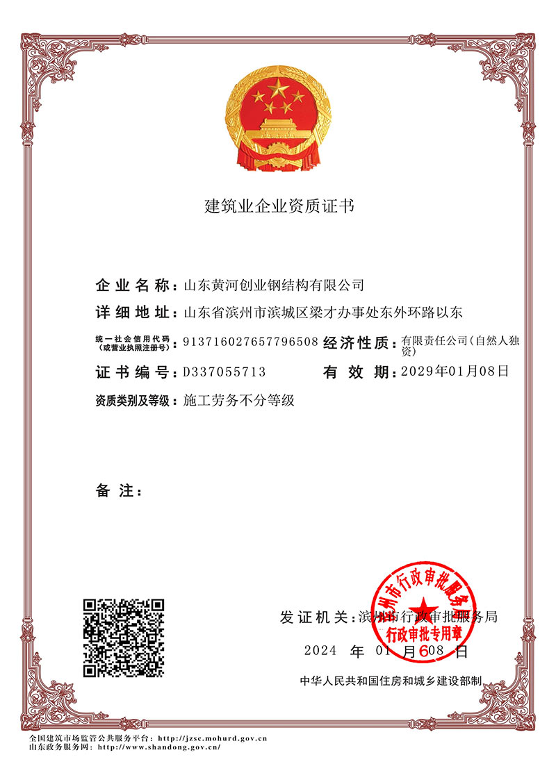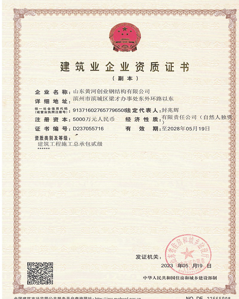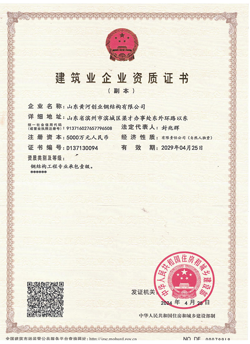 公司為了打造“黃河創(chuàng)業(yè)”品牌,在各級主管部門的領(lǐng)導(dǎo)下,在激烈的市場競爭中,自小至大,自弱至強得到長足發(fā)展,經(jīng)過不斷努力,公司先后被山東省列為重點工程企業(yè);山東省級先進(jìn)企業(yè);誠信企業(yè);連續(xù)多年被授予濱州市守合同、重信用企業(yè);獲得金融機構(gòu)信用AA級證書;濱州市建筑重點企業(yè),2016年度被授予“濱州市建筑重點企業(yè)”、“濱州市建筑優(yōu)秀企業(yè)”、“濱州市建筑業(yè)誠信企業(yè)”、“山東省建筑業(yè)誠信企業(yè)”,2021年被市局評為“濱州市鋼結(jié)構(gòu)協(xié)會主任委員單位”。連續(xù)多年被評為“突出納稅貢獻(xiàn)戶”。2022年被市應(yīng)急管理局評為“安全生產(chǎn)標(biāo)準(zhǔn)化三級企業(yè)”,多年被評為“濱州市建筑業(yè)協(xié)會優(yōu)秀會員單位,形成了“黃河創(chuàng)業(yè)”的品牌,建設(shè)項目參加QC小組競賽也多獲得二等獎、三等獎。